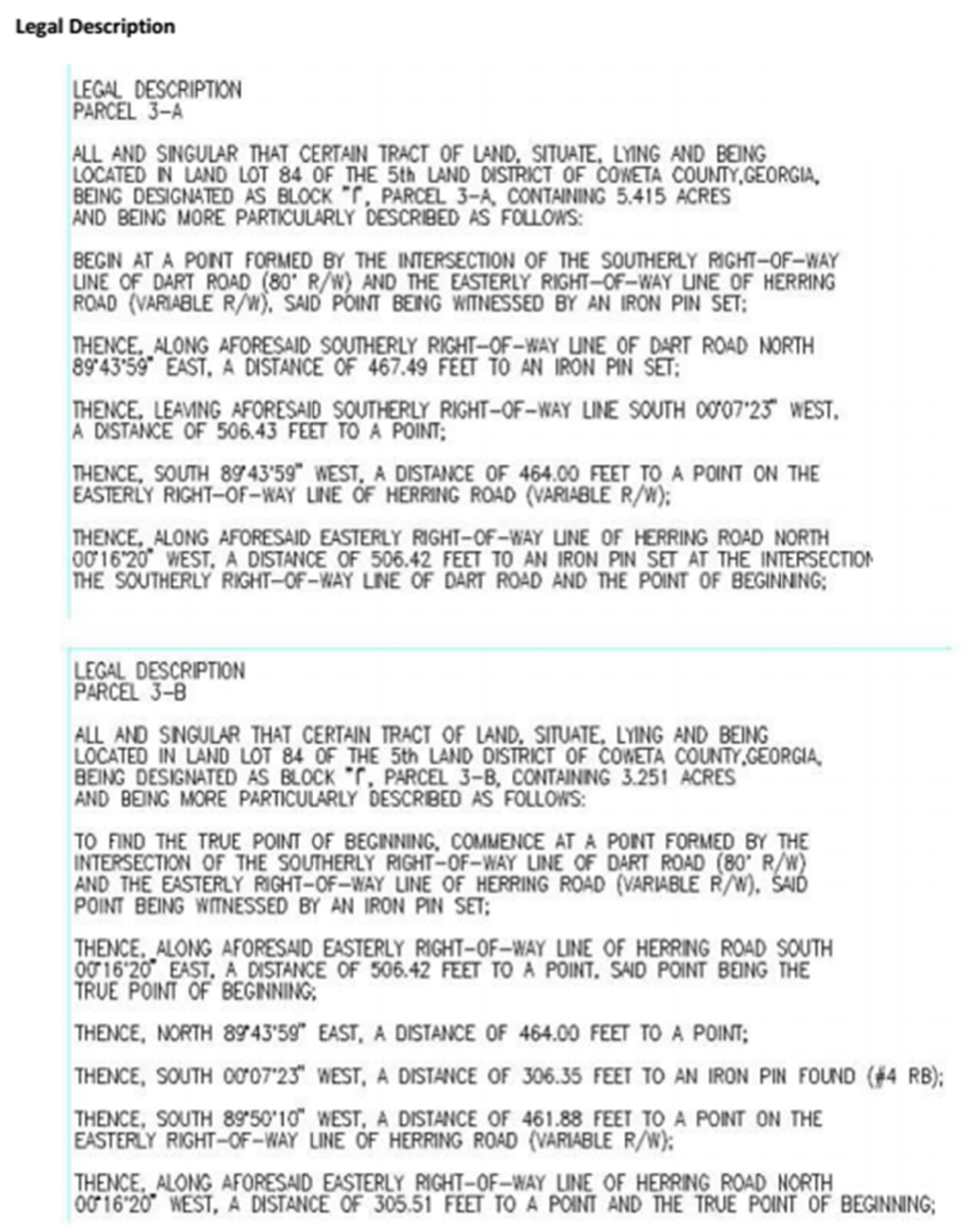 | Land: | That certain approximately 8.67 acres of land, located in the City of Newnan, Coweta County, Georgia, more particularly described in Exhibit A hereto, together with all rights and interests appurtenant thereto, including, without limitation, any water and mineral rights, development rights, air rights, easements and all rights of Seller in and to any strips and gores, alleys, passages or other rights-of-way. |