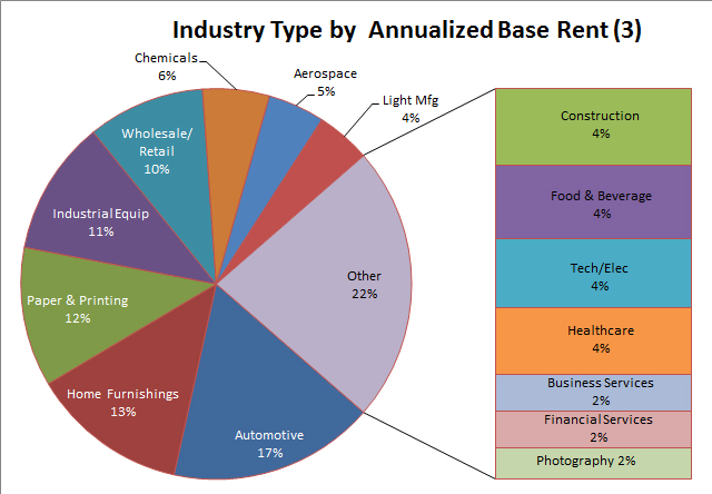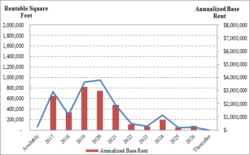 | • | “annualized rent” means the monthly base rent for the applicable property or properties as of March 31, 2017, multiplied by 12 and then multiplied by our percentage ownership interest for such property, where applicable, and “total annualized rent” means the annualized rent for the applicable group of properties; | |