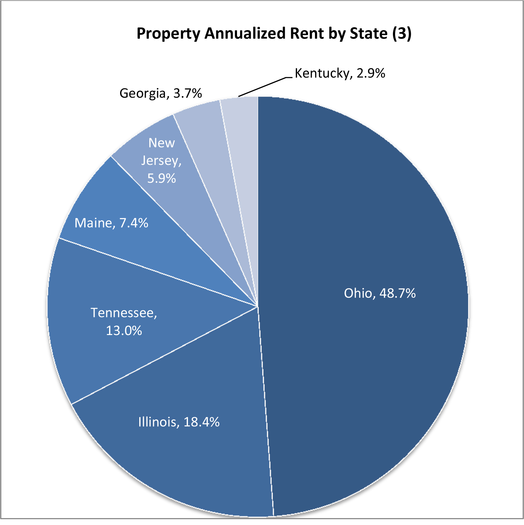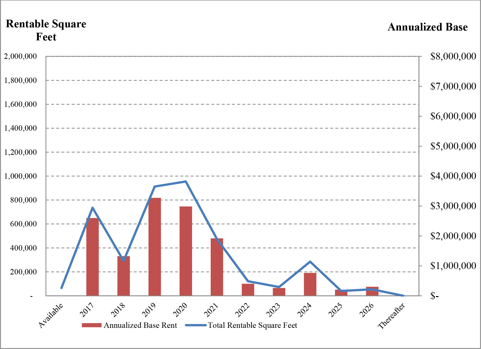 | • | “annualized rent” means the monthly base rent for the applicable property or properties as of March 31, 2017, multiplied by 12 and then multiplied by our percentage ownership interest for such property, where applicable, and “total annualized rent” means the annualized rent for the applicable group of properties; | |
