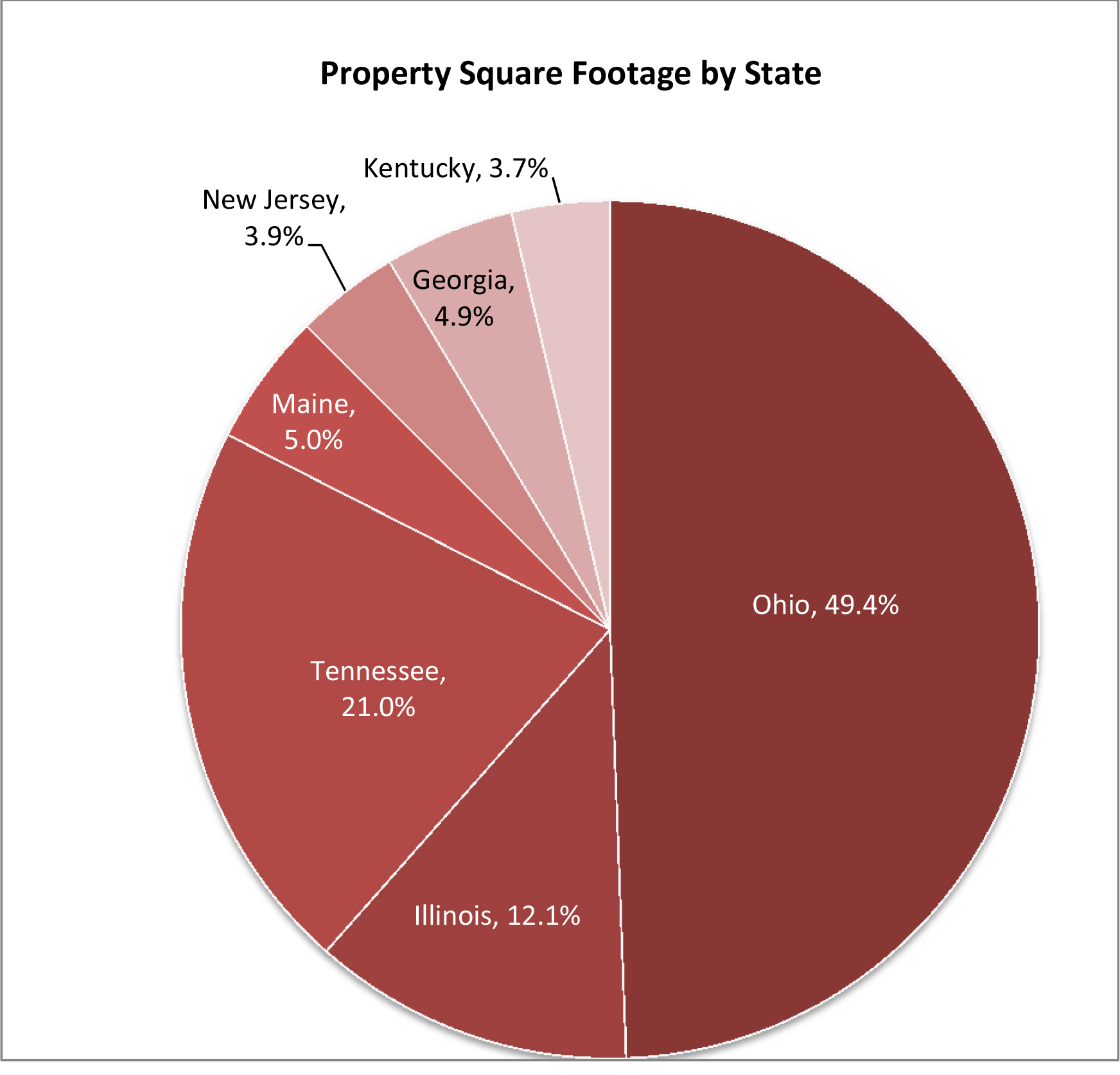 | Florence, KY | 7585 Empire Drive | (1) | 644 | 2,656 | - | 644 | 2,656 | 3,300 | 585 | 2014 | 1973 | 11 | |