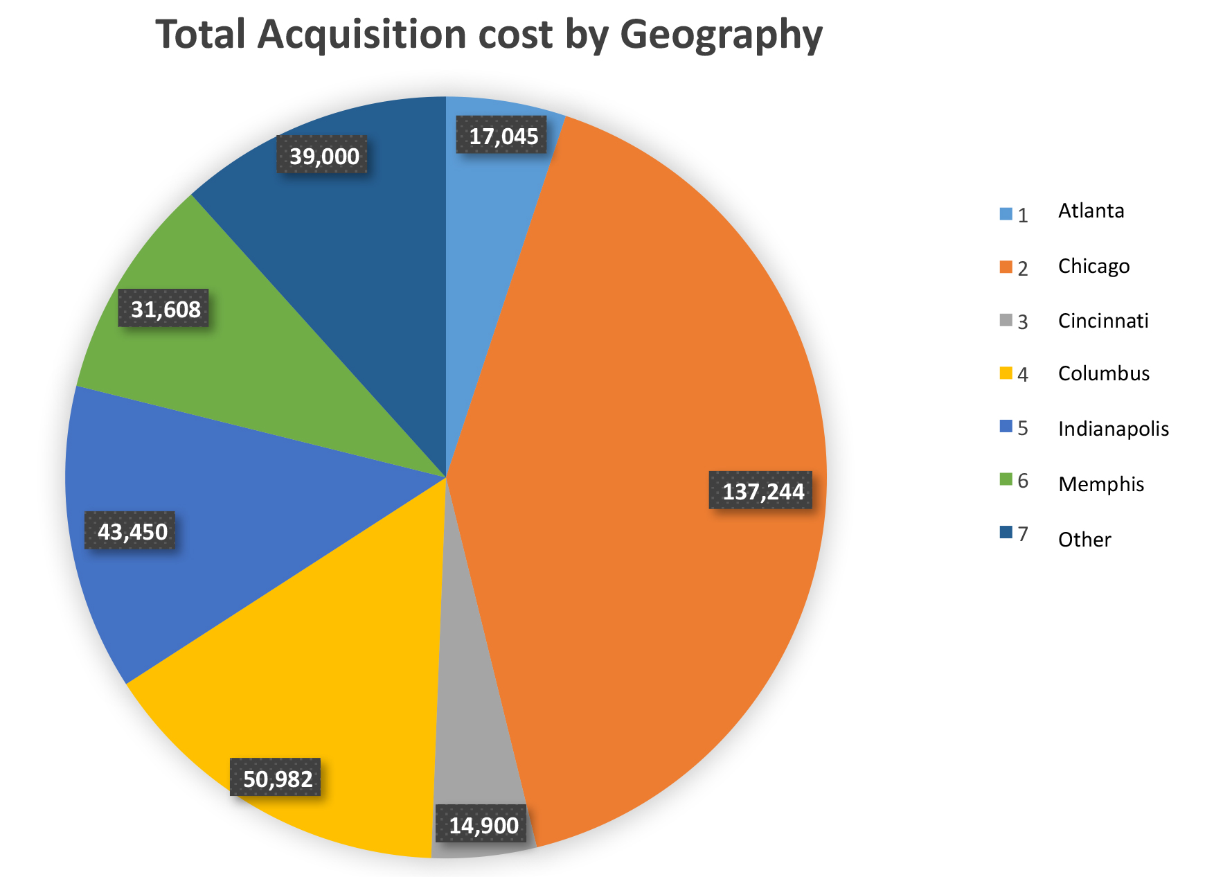 | Elgin/Arlington Heights, IL | 4/9/2018 | 2 | $ 15,675 | 269,999 | 8.0% |