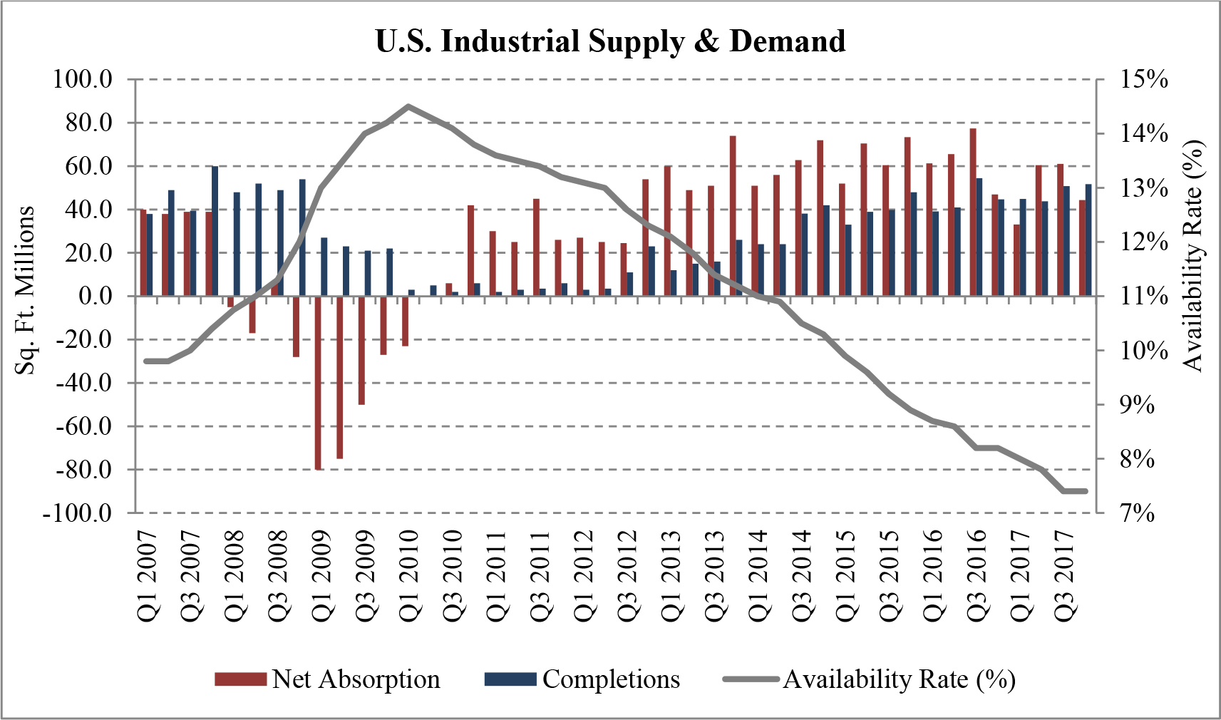 | • | “Class B industrial properties” means industrial properties that typically possess most of the following characteristics: more than 15 years old, square footage between 50,000 and 300,000 square feet, clear heights between 18 and 26 feet, and adequate building systems (mechanical, HVAC and utility) to deliver services currently required by tenants but which may need upgrades for future tenants; | |