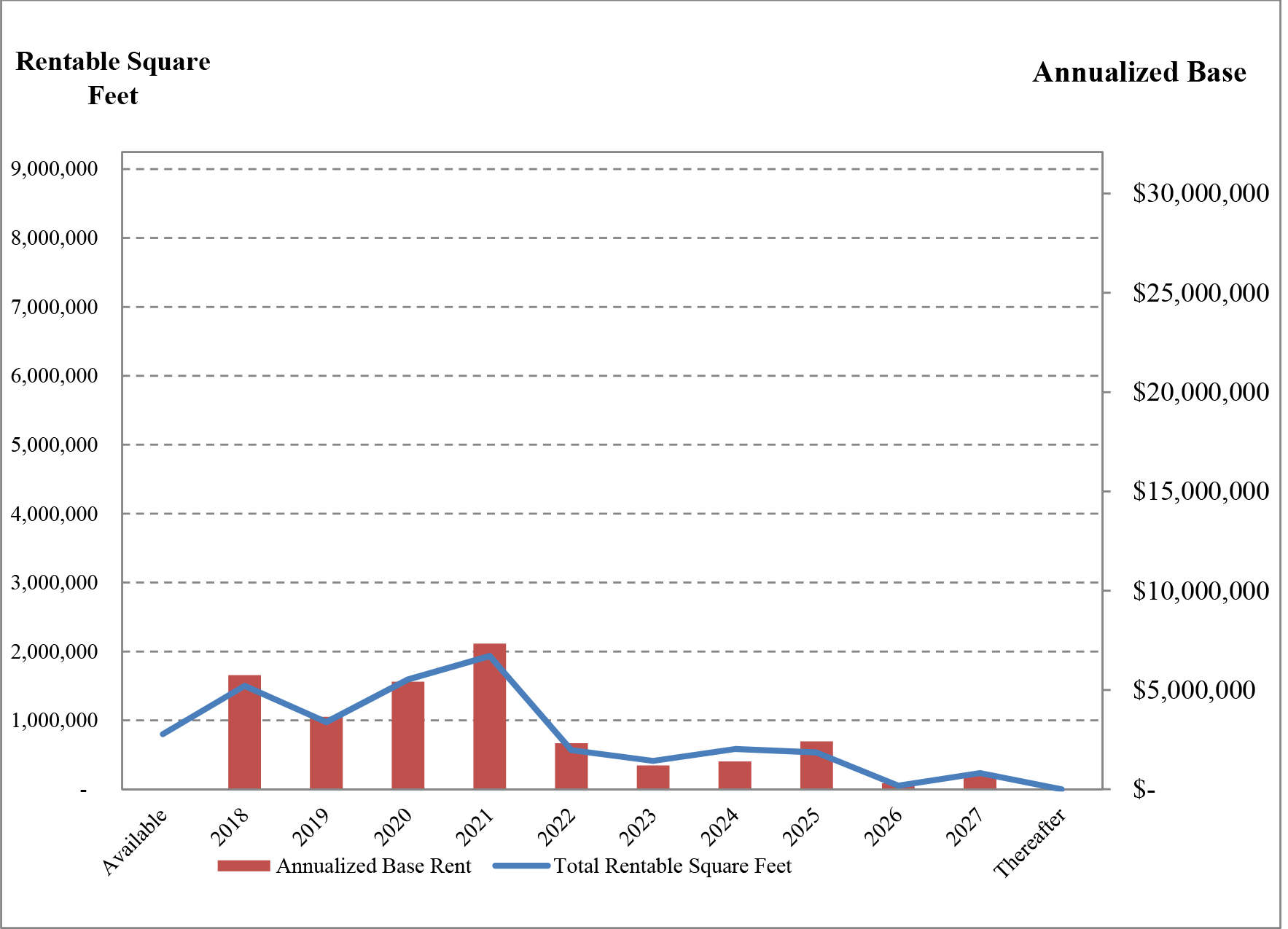 | • | “annualized rent” means the monthly base rent for the applicable property or properties as of March 31, 2018, multiplied by 12 and then multiplied by our percentage ownership interest for such property, where applicable, and “total annualized rent” means the annualized rent for the applicable group of properties; | |