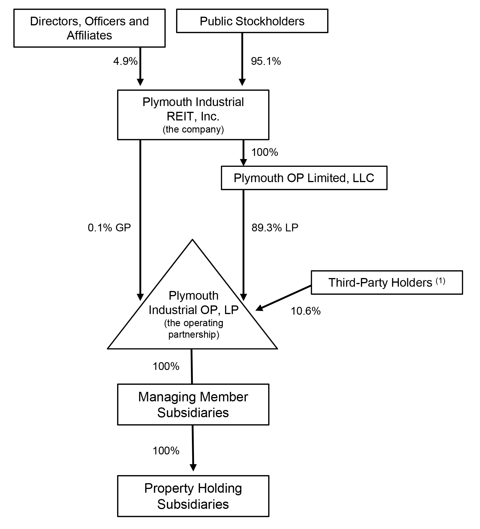 Plymouth Industrial REIT, Inc. is a full service, vertically integrated, self-administered and self-managed real estate investment trust, or REIT, focused on the acquisition, ownership and management of single and multi-tenant Class B industrial properties, including distribution centers, warehouses and light industrial properties, primarily located in secondary and select primary markets across the United States. As of the date of this prospectus, we own 51 industrial properties located in nine states with an aggregate of approximately 9.5 million rentable square feet.