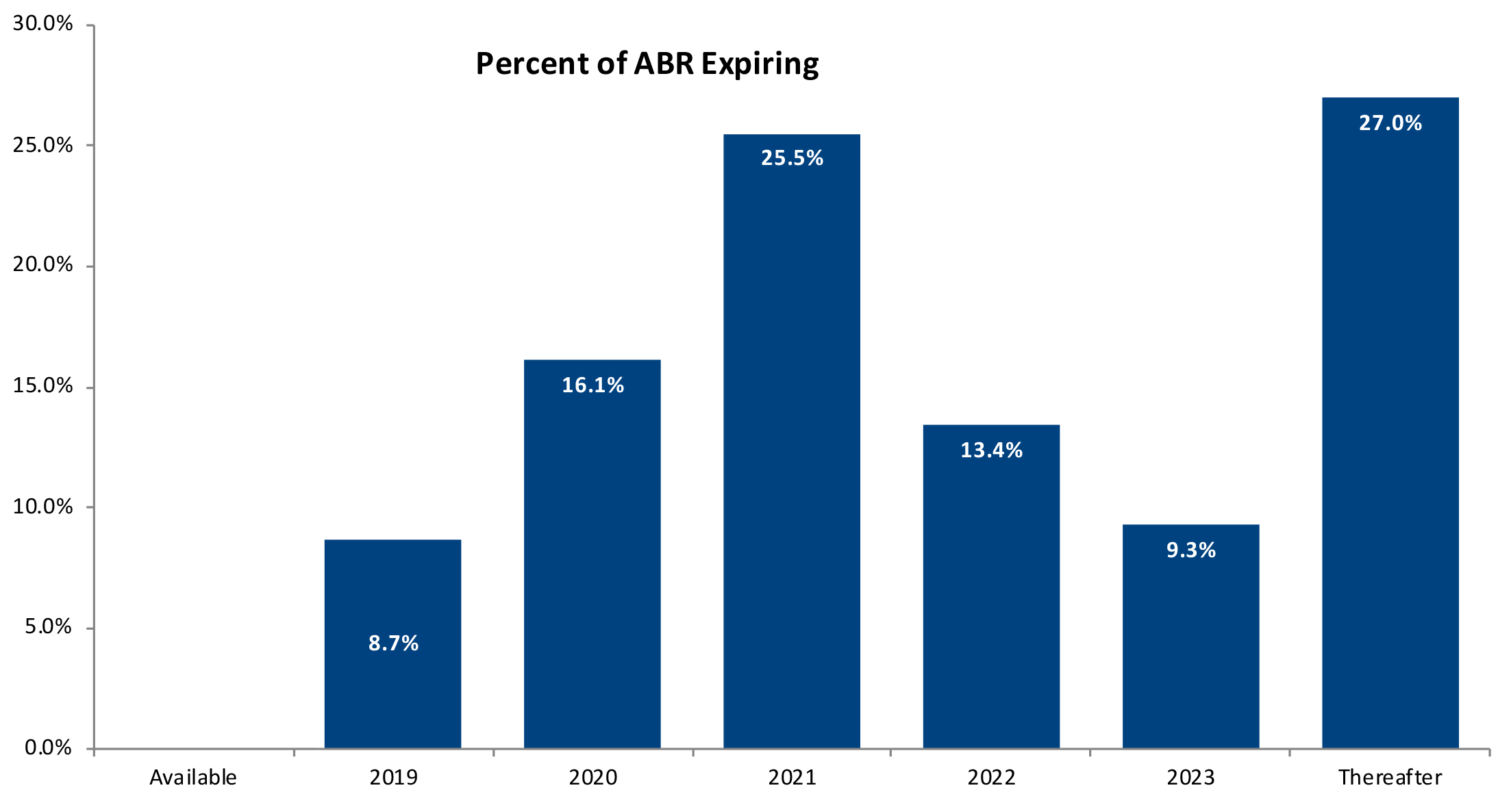 | (1) Annualized base rent is calculated as monthly contracted base rent per the terms of such lease, as of March 31, 2019, multiplied by 12. Excludes rent abatements. |