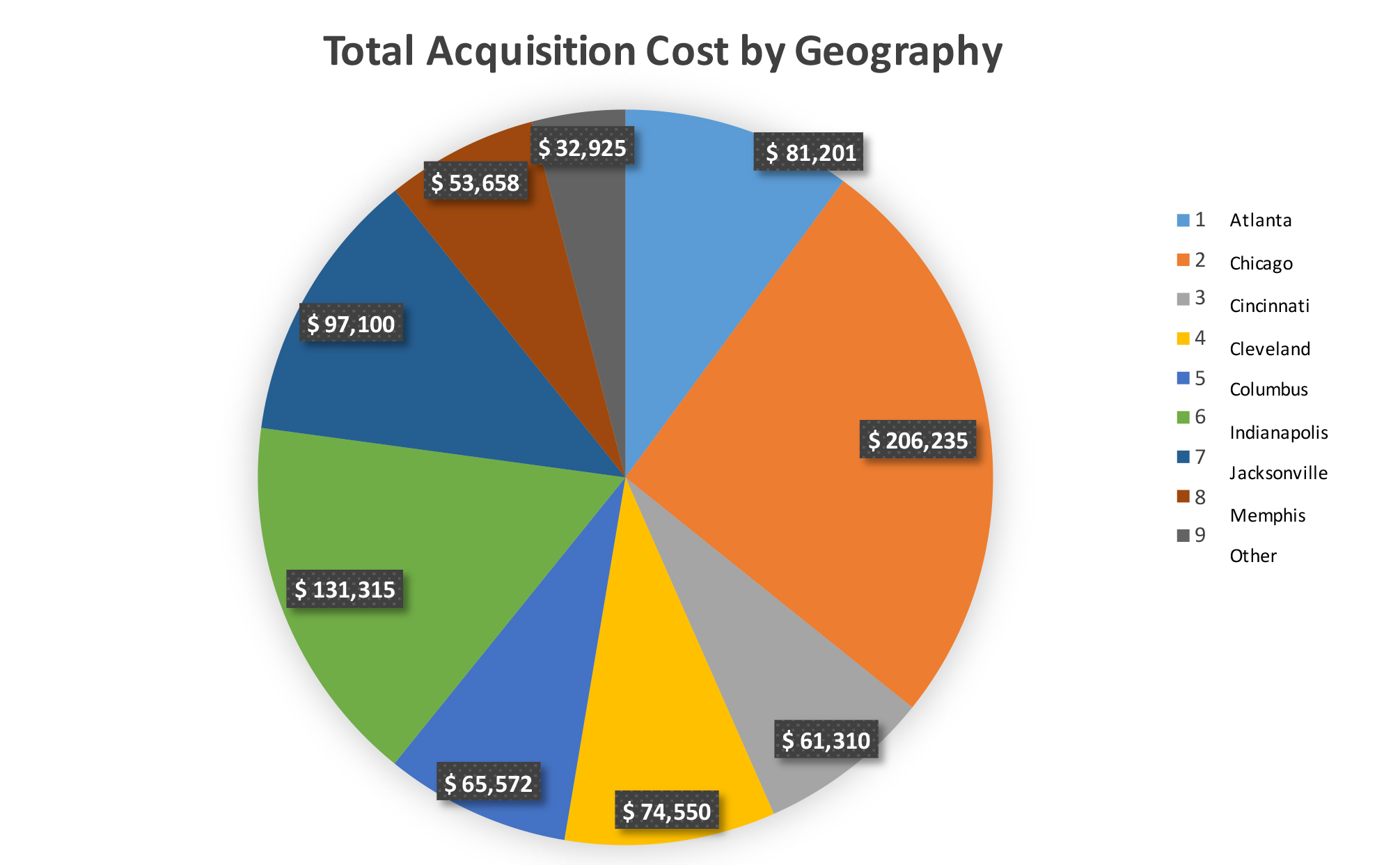 | Indianapolis, IN | 1/27/2020 | 1 | $ 8,800 | 276,240 | 7.8% |