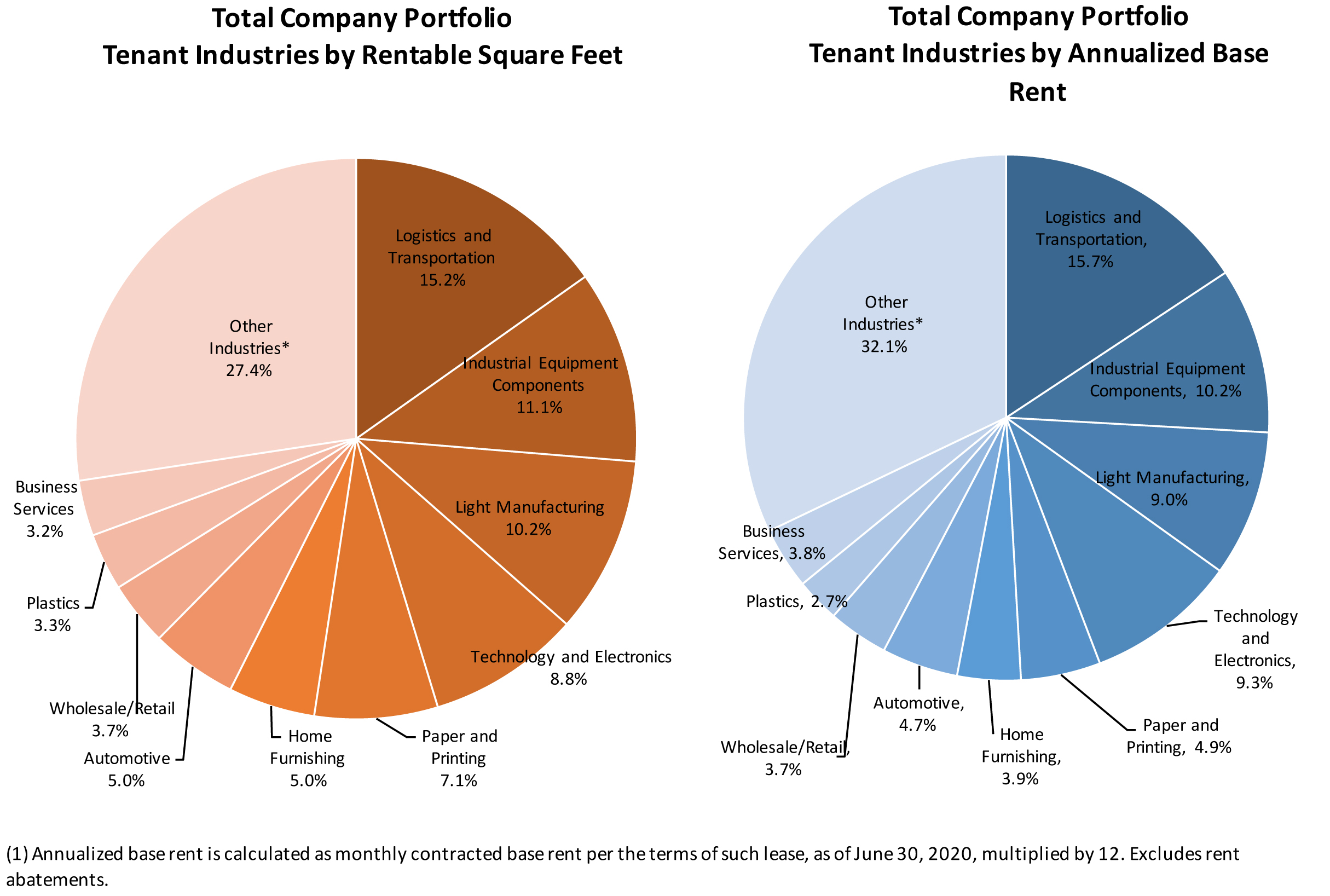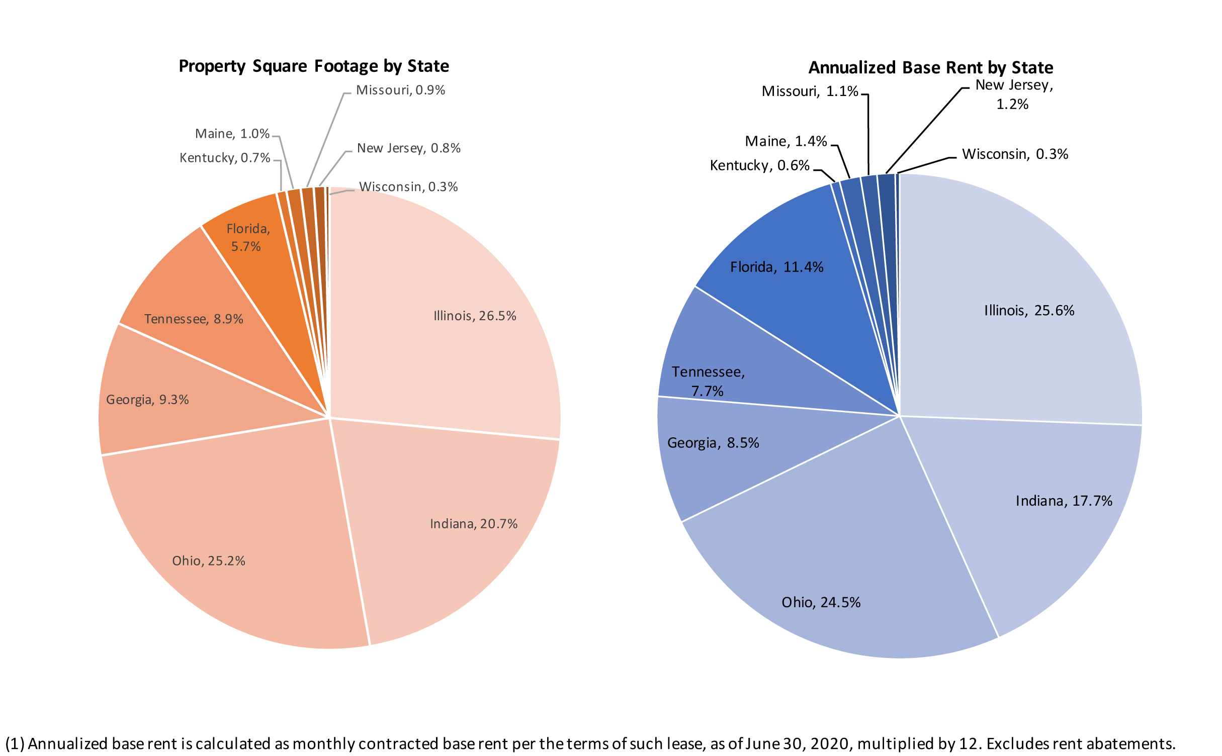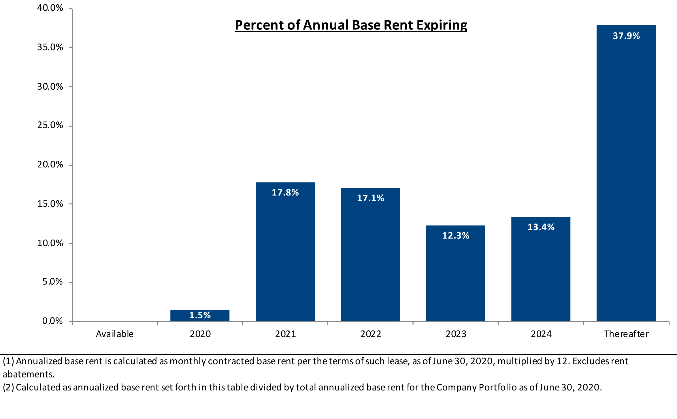 (1) Annualized base rent is calculated as monthly contracted base rent per the terms of such lease, as of June 30, 2020, multiplied by 12. Excludes rent abatements.