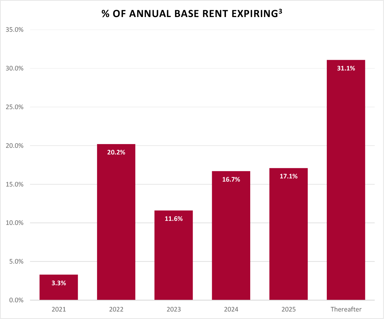 | 1) | Annualized base rent is calculated as monthly contracted base rent as of June 30, 2021, multiplied by 12. Excludes rent abatements. | ||||