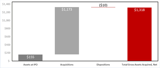 | Purchase Price4 | $370,977 | ● | Since the Company's IPO in June 2017, the Company has acquired over $1.17 billion of wholly owned warehouse, distribution, light manufacturing, and small bay industrial properties totaling 25.7 million square feet | |