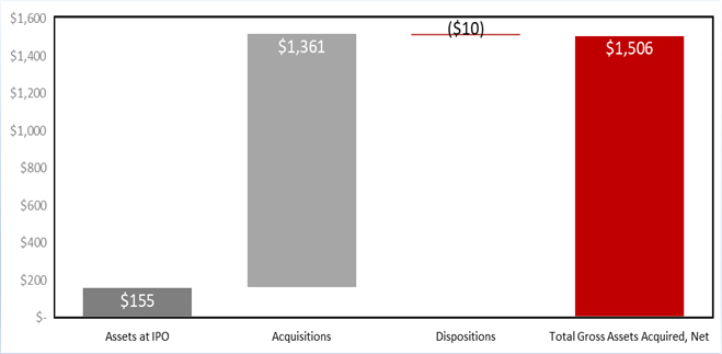 | Purchase Price4 | $188,305 | ● | Since the Company's IPO in June 2017, the Company has acquired over $1.36 billion of wholly owned warehouse, distribution, light manufacturing, and small bay industrial properties totaling 29.2 million square feet | |