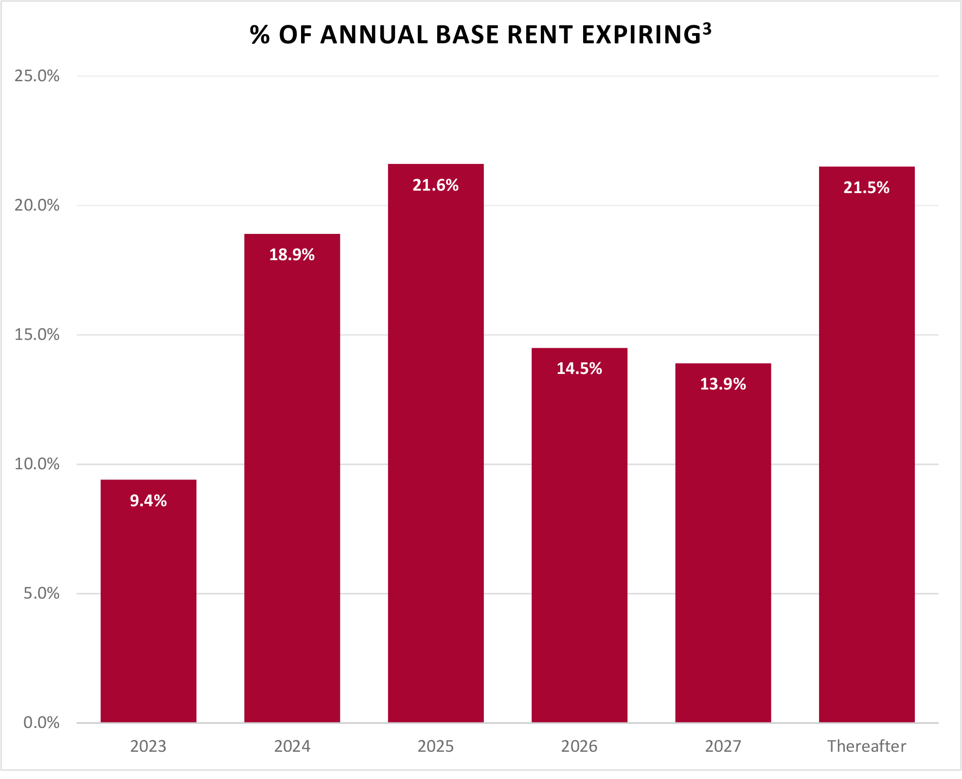 | 3) | In-Place + Uncommenced ABR calculated as in-place current annualized base rent as of December 31, 2022 plus annualized base rent for leases signed but not commenced as of December 31, 2022. |