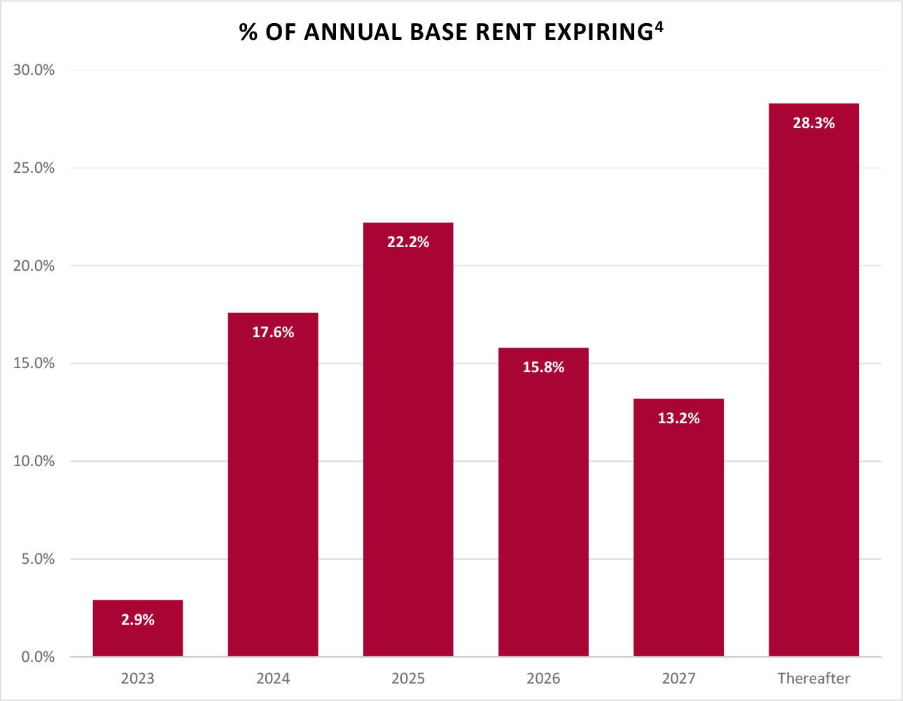 | 3) | In-Place + Uncommenced ABR calculated as in-place current annualized base rent as of June 30, 2023 plus annualized base rent for leases signed but not commenced as of June 30, 2023. |