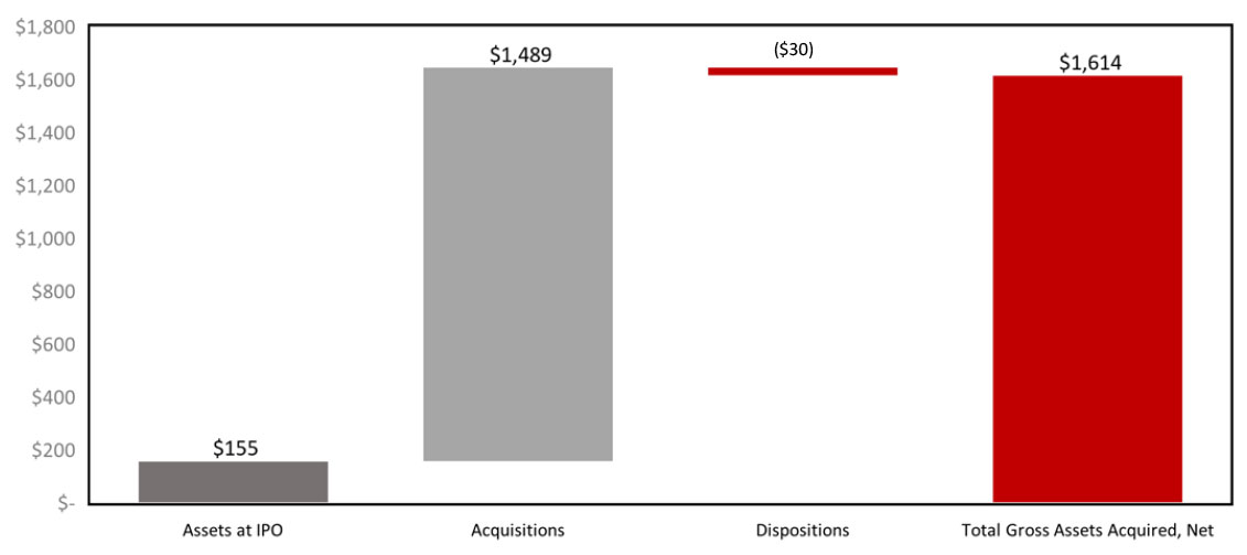 | Total Acquisitions Post-IPO | 187 | $ 1,426,215 | 29,894,952 | 7.4% | $ 55.94 | |||||||